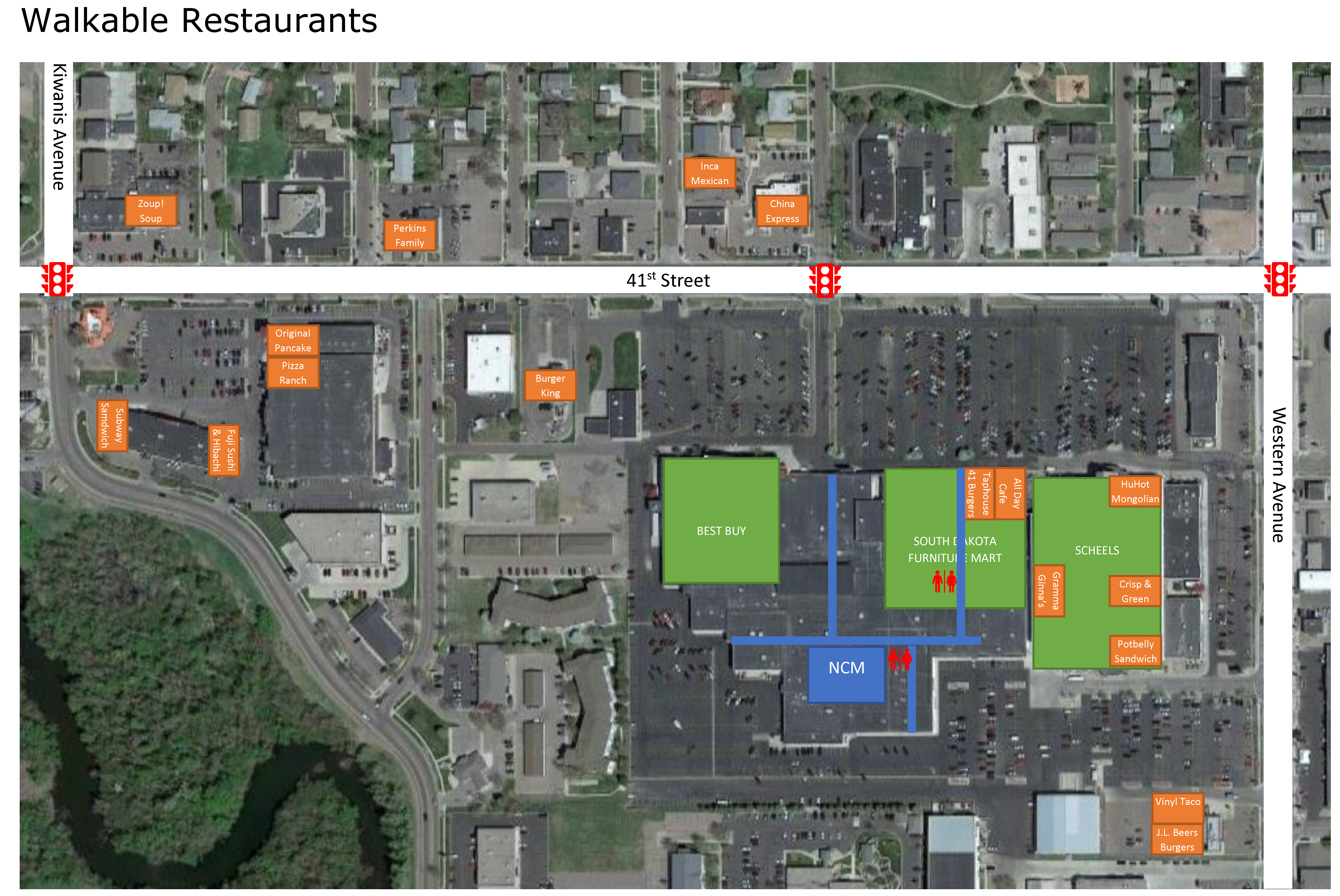 - Sidewalk along the “oxbow” part of the Sioux River along Kiwanis Avenue, south of 41st Street